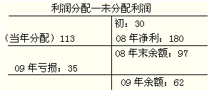 2009年未分配利润=300 000+1 800 000-1 130 000-350 000=620 000(元)。
