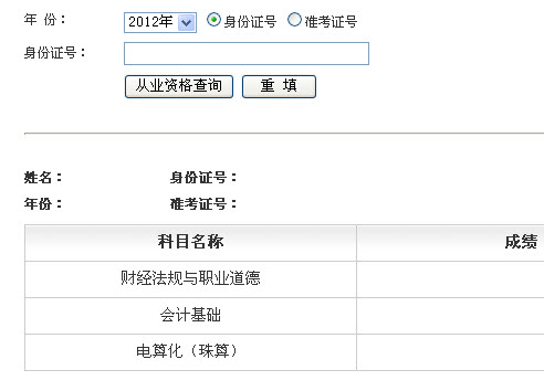 广西2012年下半年会计从业资格无纸化考试成绩公布