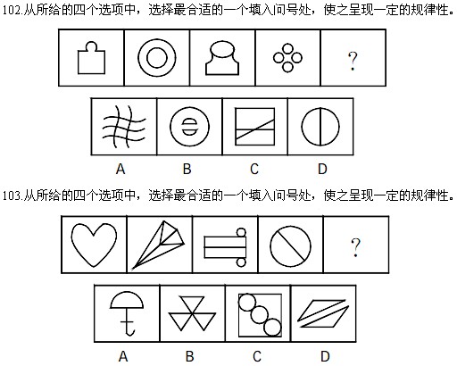 101.从所给的四个选项中,选择最合适的一个填入问号处,使之呈现一定的规律性。