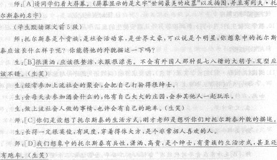 12.阅读《列夫•托尔斯泰》的教学实录(节选),按要求答题(画线语句的序号与选项的序号是对应的)。