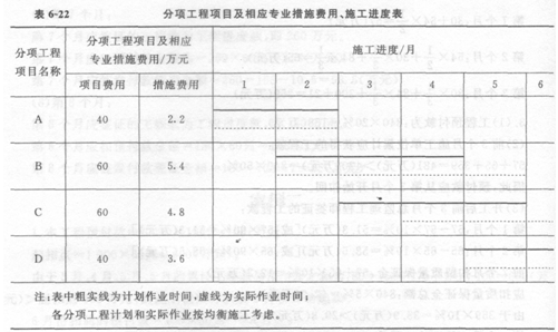 (2012年真题) 某工程项目业主采用工程量清单计价方式公开招标确定了承包人,双方签订了工程承包合同,合同工期为6个月。合同中的清单项目及费用包括:分项工程项目4项,总费用为200万元,相应专业措施费用为l6万元;安全文明施工措施费用为6万元;计日工费用为3万元;暂列金额为12万元;特种门窗工程(专业分包)暂估价为30万元,总承包服务费为专业分包工程费用的5%;规费和税金综合税率为7%。各分项工程项目费用及相应专业措施费用、施工进度见表6-22。